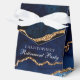 Elégante agate bleu marine et or décorent cette boîte de faveur moderne customisée retraite. Boîtes chic et personnalisées pour un retraité à célébrer par des amis et la famille à la fin de leur carrière.
