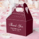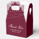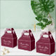 Placez vos cadeaux de mariage dans ces élégantes boîtes de faveur de mariage bordeaux rustiques et personnalisées avec dentelle fleurie blanche et lumières de fée. Personnalisez facilement ces boîtes aux faveurs de mariage bordeaux avec vos détails de mariage. Nos élégantes boîtes de mariage bordeaux sont parfaites pour votre mariage campagnard romantique bordeaux et rustique. Ces ballotins de remerciement personnalisés peuvent être customisés à d'autres occasions, comme la nuptiale, ou des baby showers.