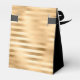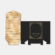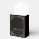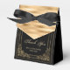 Merci à vos invités mariages avec ces élégants ballotins, avec un cadre en faux or rectangulaire vintage sur un arrière - plan noir, avec une fausse feuille d'or et satin rayé dos et rabat. Les mots "Merci" apparaissent dans un script orné de couleur or. Personnalisez les boîtes avec les noms de la mariée et du marié et la date du mariage dans la police en cuivre doré.