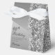 These elegant silver glitter and diamond sided 60th Birthday favor boxes are perfect for your or your loved one's sixtieth birthday party favors. They're chic, trendy and stylish while at the same time being classy. The modern yet traditional fonts are crisp and clean and make these thank you favor boxes unique and one-of-a-kind. These sparkly and glamorous boxes are decorated on all sides. They're very easy to customize and make your own. Select "Personalize this Template" and type in your information. In seconds you'll see your beautiful favor boxes.