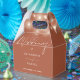 This elegant terracotta wedding favor box, featuring pretty string lights, can be personalized with your information in chic typography. Designed by Thisisnotme©
