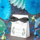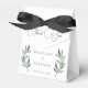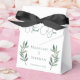 Un script de calligraphie verte tout simplement élégant avec deux feuilles d'eucalyptus aquarelle de chaque côté en bas pour décorer cette belle et minimaliste boîte de faveur mariage de automne partie. Un design mariage moderne pour une soirée de jardin la nuit.