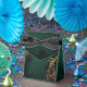 Elegantly designed wedding favor boxes of dark green and gold with your choice of colored ribbon. Personalize with the edit function to create your own message and style. There is matching invitation, photo backdrop and paper napkins in my Zazzle shop. Not just for weddings, can be used for birthdays, baby showers or any celebration.