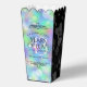 Fêtez leur 43ème anniversaire de mariage opal (et une histoire d'amour digne d'un film) avec ces ballotins chic de style pop-corn ! Des lettres élégantes avec des confettis hexagonaux sur des arrière - plans opaux irisés bordés de panneaux noirs ajoutent une touche mémorable à cette occasion spéciale et à cette étape extraordinaire. Personnalisez avec le nom du couple, les dates du mariage et les messages. Design © W.H. Sim. Voir plus sur zazzle.com/expressionsoccasions