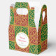 Un élégant cadeau de vacances sur mesure, un biscuit de Noël ou une boîte cadeau de pâtisserie avec des lettres de script et des lettres en blocs vintages et des articles de vacances rouges et vertes avec une vintage fleur de lis motif en or restauré à partir de carreaux antiques.