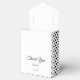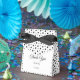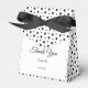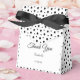 Boîte de faveur de fête élégante à pois noirs sur fond blanc.