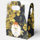 Un design élégant de Baby Shower de mariage avec des abeilles et un fond de fleurs dorées et un nœud coquette orange.