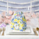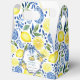 Un design élégant de Baby Shower avec un fond de carreaux bleus et des citrons.