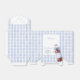Ces boîtes de faveurs de baby shower charmantes présentent une bouteille de soda avec un joli nœud bleu et un fond à carreaux bleus. Conçu par Thisisnotme©