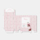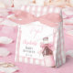 Ces boîtes de faveurs de baby shower charmantes présentent une bouteille de soda avec un joli nœud rose et un fond à carreaux rose. Conçues par Thisisnotme©