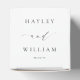 Ces boîtes de dragées de mariage comportent un design minimaliste et un titre en calligraphie. Personnalisez la boîte avec vos noms, le titre en script n'est pas modifiable. Pour une personnalisation plus avancée de ce design, sélectionnez simplement le bouton "Personnaliser" ci-dessus.