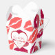 Des faveurs élégantes et raffinées pour un enterrement de vie de jeune fille ou une fête de bachelorette avec la phrase "EMBRASSEZ LA DEMOISELLE D'HONNEUR AU REVOIR." Demoiselle en lettres cursives sur des lèvres rouges.