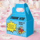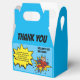 Envoyez une boîte de remerciement de super-héros extra spéciale à vos amis, pour les remercier d'avoir assisté à votre fête et pour leur exprimer votre gratitude pour leurs cadeaux. Vous êtes le héros en utilisant une photo de votre visage ! Avec un texte ludique qui dit "MERCI" et "j'ai aimé le gâteau et les cadeaux aussi, mais ma partie préférée était de vous voir ! MERCI D'ÊTRE VENUS À MA FÊTE ET POUR LE SUPERBE CADEAU" et "LEUR NOM". Les styles de police et la couleur de fond peuvent être modifiés en cliquant sur le lien "personnaliser davantage" après la personnalisation.