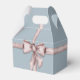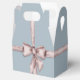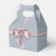 Un adorable arrière - plan bleu bébé avec un arc rose poussiéreux d'aquarelle enroulé autour de ce ballotin.
