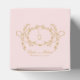 Ce petit ballotin à l'extérieur rose vif est décoré d'un arc de feston et d'un swag de chaque côté. Votre monogramme, vos noms et votre date de mariage sont sur le rabat supérieur dans une police dorée. Ce ballotin coordonne avec les autres produits de la collection Vintage de Mariages Glam Paris Rose.