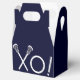 Boîtes de faveur de fête de crosse créative ou d'événement sportif d'équipe avec un design de bâtons de crosse sur fond bleu marine.