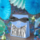 Boite à thème de crosse créative avec d'impressionnants bâtons de farniente design et cotation d'équipe sur fond bleu clair.