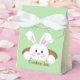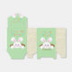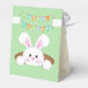 Cet adorable lapin blanc s'approche pour voir si Pâques est là. Les panneaux avant et arrière montrent le lapin de Pâques. Ci-dessus il y a des bannières qui lisent "HAPPY EASTER". Les deux panneaux latéraux sont beiges avec un motif fleuri.