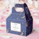 Élégante boîte de remerciement de mariage céleste avec des étoiles et des lunes dorées et une typographie moderne. Vous pouvez personnaliser avec votre propre message de remerciement au verso. Un moyen parfait de dire merci à vos invités ! Conçu par Thisisnotme©