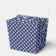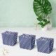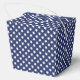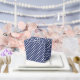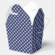 Cette boîte de faveur de cadeau est présentée dans un imprimé bleu marine et étoiles blanches.