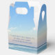 Cette boîte de faveurs d'événement de plage pittoresque présente le coucher de soleil rose et orange magnifique touchant doucement les vagues de l'océan au-dessus du sable et de l'herbe marine à Destin en Floride. Jolies boîtes de fête au bord de la mer pour une réunion de famille ou un mariage de destination avec date de voyage personnalisée et nom de famille pour votre lieu de vacances préféré.