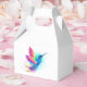 Bright, iridescent, exotic flying hummingbird on white background, painted over with multicolor, watercolor paint. Rainbow hummingbird.