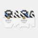 Cette conception comprend un drapeau de la police avec des rayures noires et blanches, ainsi qu'une fine bande bleue. Une excellente façon de féliciter le nouveau diplômé pour son diplôme de l'académie de police. Customiser avec le nom de l'agent d'application de la loi diplômé. Célébrez cette étape importante dans le style!