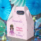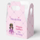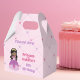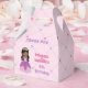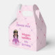 Cet adorable ballotin de fête d'anniversaire de princesse rose présente une jolie fille noire portant une belle robe de bal rose. Personnalisez ce cadeau de fête pour enfants mignon avec le nom et l'âge de votre enfant afro-américain en violet joli entre le motif de coeur amusant.