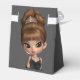 Boîtes de faveurs de fête de diva adorables et amusantes. Vous pouvez choisir la couleur de fond, ajouter ou supprimer du texte et changer la couleur du ruban sur cette boîte de faveurs de fête de diva amusante et mignonne. Le texte sous le rabat indique "Merci, Dahhhhhling!" et peut être supprimé ou modifié.