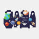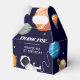 Ballotins d'anniversaire sur le thème de l'espace extra-atmosphérique avec un arrière - plan ciel étoilé, des planètes du système solaire, un navire-fusée, un astronaute, et un modèle de remerciement d'anniversaire facile à personnaliser.