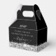 Élégante boîte de faveur de fête avec bordure parties scintillant argent et confetti arrose sur un arrière - plan noir avec XOXO personnalisé, parfait pour un anniversaire moderne et chic, bat mitzvah, Quinceañera, douche nuptiale, baby shower ou fête de bachelorette. Cliquez sur CUSTOMISER PLUS loin pour modifier les polices, les couleurs et la disposition afin de créer un ballotin personnalisé amusant et unique pour vos invités de fête.
