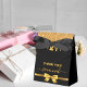 Elégant, classique, glamour et ballotin de style girly pour une fête d'anniversaire de 21ème (ou tout âge). Faux ruban or et arc de couleur or avec fausse parties scintillant d'or goutte à goutte. Arrière - plan noir. Avec le texte : Merci ! Âge : 21 ans. Personnalisez et ajoutez un nom écrit avec un script de style à la main moderne avec des swashes. Pour que les swashes ne suppriment que le nom de l'échantillon, laissez les espaces ou émoticônes devant et après le nom.