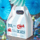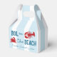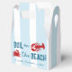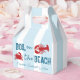 Bouillir sur la plage ! Week-end de bachelorette bouillabaisse de fruits de mer avec un crabe et un homard sur un fond rayé bleu côtier