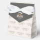 Célébrez l'exploit de votre diplômé avec style grâce à des boîtes de faveur personnalisées ! Avec un design chic crème et gris charbon, ces boîtes présentent un message répétitif « Félicitations » qui inclut le nom du diplômé. Le rabat met en valeur la photo de votre diplômé découpée à l'intérieur d'un cadre élégant de fin d'études, ainsi que l'année de promotion. L'arrière comprend un message imprimé sincère : « Merci de célébrer avec nous ! » © Kimbellished, LLC