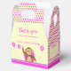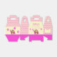 Un singe souriant et des ballons roses décorent l'avant et l'arrière de cette boîte pour célébrer le deuxième anniversaire d'un garçon ou d'une fille. Le texte en haut et en avant de l'encadré est entièrement modifiable et se lit actuellement "Merci" "POUR NOUS AIDER À CÉLÉBRER" "Deuxième anniversaire de Rowan". Sur le côté de la boîte, il y a un autre texte modifiable, avec une suggestion de noter le nom du destinataire : "Cette boîte de partie appartient à". La couleur arrière - plan est crème et un motif de points roses complète le design.
