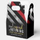 Cette conception comprend un drapeau de pompiers avec des rayures noires et blanches, ainsi qu'une fine bande rouge. Le texte "La légende prend sa retraite" se trouve au-dessus du nom du pompier, du lieutenant ou du chef qui prend sa retraite. Fêtez dans le style !