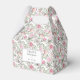 Boîte de faveur de baby-shower élégante et chic commence par une impression de rose rose féminine sur toute la surface. Un cadre blanc rectangulaire sur le devant entoure le nom de la mariée, la douche de mariée et la date. Un cœur rose pastel sépare le texte. Cette boîte de faveur fait partie de la collection Summer Romance qui contient les éléments dont vous avez besoin pour créer facilement une douche de mariée unique et personnalisée. Vous devriez voir un lien vers celle-ci sur cette page. Si vous ne voyez pas le lien ou si vous avez besoin d'aide pour un article, veuillez me contacter.