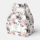 Boîte de faveur élégante et chic pour une douche de mariée commence par une impression florale féminine violette et rose sur toute la surface. Un cadre rectangulaire blanc sur le devant entoure le nom de la mariée, la douche de mariée et la date. Un cœur violet sépare le texte. Cette boîte de faveur fait partie d'une collection qui contient les éléments dont vous avez besoin pour créer facilement une douche de mariée unique et personnalisée. Vous devriez voir un lien vers celle-ci sur cette page. Si vous ne voyez pas le lien ou si vous avez besoin d'aide pour un article, veuillez me contacter.