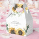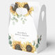 Créez une boîte cadeau de Fête de mariage avec écriture Florale de Tournesol et Eucalyptus avec ce modèle botanique mignon avec un beau bouquet floral rustique avec une typographie simple moderne.