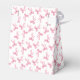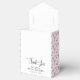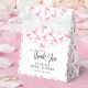 Boîtes de faveurs de fête de mariage personnalisées Coquette avec ruban rose. Un motif de ruban rose sur toute la surface. Le devant comprend le texte "Merci" dans un style de calligraphie manuscrite. Personnalisez le modèle avec le titre et la date de votre événement. © Kimbellished, LLC