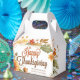 Cette magnifique boîte de remerciement pour entreprise présente une belle bordure de feuilles d'automne aquarellées et de fleurs automnales autour de votre élégant message HAPPY THANKSGIVING en écriture cursive. Personnalisez avec le nom de votre entreprise en marron clair dans les tons terre orange et jaune de ces boîtes de cadeaux de fin d'année pour entreprises.