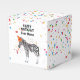 Une jolie illustration d'une fête zébrée et de s'amuser ! Zebra portant un casquette de fête et soufflant la corne de fête avec des confettis qui pleuvent dessus. Que les célébrations commencent ! Parfait pour tous ceux qui aiment les illustrations d'animaux drôles. Ballotin d'anniversaire idéal. Customisez l'occasion et le nom et faites-le vous-même.