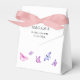 Ballotin de douche à thème papillon Whimsy avec aquarelle illustration de papillons roses et violets.
