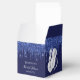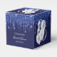 Une couleur bleu marine arrière - plan. Décoré de gouttes de parties scintillant bleue, look dérapant de peinture et ballons blancs. Personnalisez et ajoutez un nom et une date. Script de style moderne à la main. Avec le texte : Fête des mariées et Merci écrit avec un script de style moderne écrit à la main.