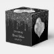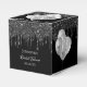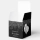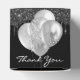 Soignée, classique, glamour Fête des mariées fête. Une couleur arrière - plan noire classique. Avec le texte : Fête des mariées et Merci écrit avec un script de style moderne écrit à la main. Boutons décorés de faux parties scintillant, look dérapant de peinture et ballons de couleur argent. Personnalisez et ajoutez un nom et une date.