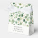 Rendez votre shower de mariage encore plus spécial avec ce ravissant sac-cadeau à motif de verdure d'eucalyptus. Doté d'un motif botanique aquarelle luxuriant avec des teintes vertes douces et des accents dorés délicats, ce sac dégage de la sophistication et un charme naturel. La typographie élégante sur fond blanc ajoute une touche raffinée, tandis que le rabat supérieur stylé et le nœud en ruban de satin en renforcent l'attrait luxueux. Parfait pour emballer de petits cadeaux, des friandises ou des souvenirs, ce sac est une façon élégante de remercier vos invités et de compléter parfaitement la décoration de votre événement.