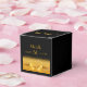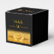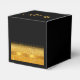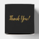 Elégant, classique, glamour et ballotin de style féminin. Un ruban doré et un arc à la parties scintillant dorée et brillant, un peu de bling et de luxe pour une fête de 50e anniversaire. Arrière - plan noir. Avec le texte : Merci ! au-dessus. Avant : Modèles pour un nom, 50 ans et la date de naissance et la date anniversaire.