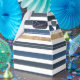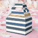 Ces boîtes à cadeaux rayées bleu marine, blanc et or sont parfaites pour les fêtes prénatales, les fêtes d'anniversaire, les fêtes nautiques, les fêtes de plage et bien d'autres occasions ! Articles assortis disponibles en magasin ! (c) The Happy Cat Studio.