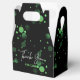 Un ballotin d'anniversaire moderne, élégant et glamour. Ce design est caractérisé par un Merci dynamique de typographie avec bokeh en dégradé vert sur un arrière - plan noir. Personnalisez et ajoutez les détails de votre fête.