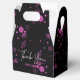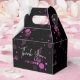 Un ballotin d'anniversaire moderne, élégant et glamour. Ce design présente un Merci dynamique de typographie avec un dégradé rose sur un arrière - plan noir. Personnalisez et ajoutez les détails de votre fête.